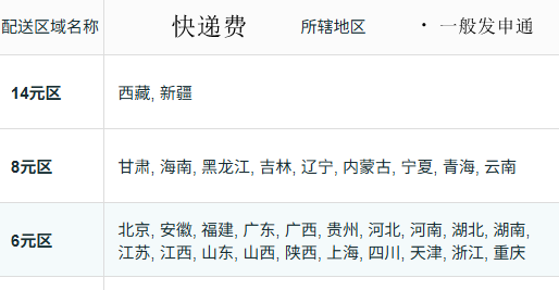 国内邮费表如下,拍商品余款+邮费合并总额即可啦