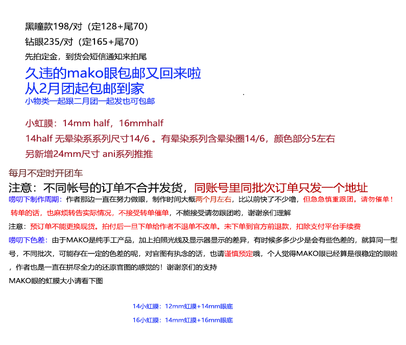 【代购】Mako树脂眼 型号:MOON-016